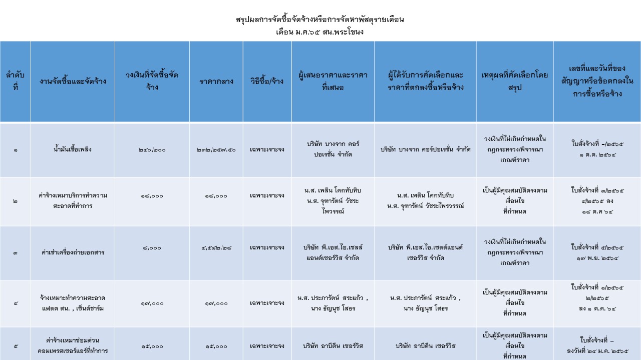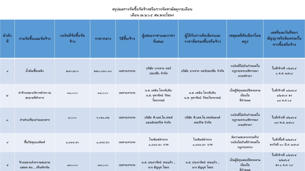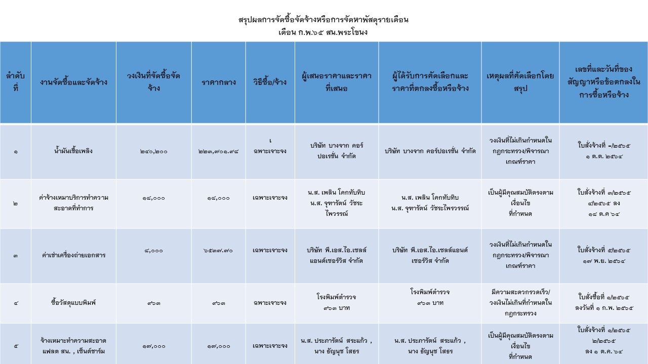 สรุปผลการจัดซื้อจัดจ้างหรือการจัดหาพัสดุรายเดือน