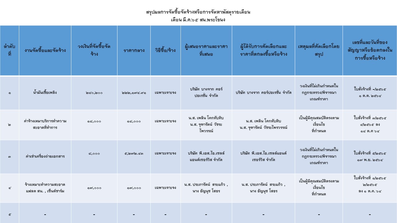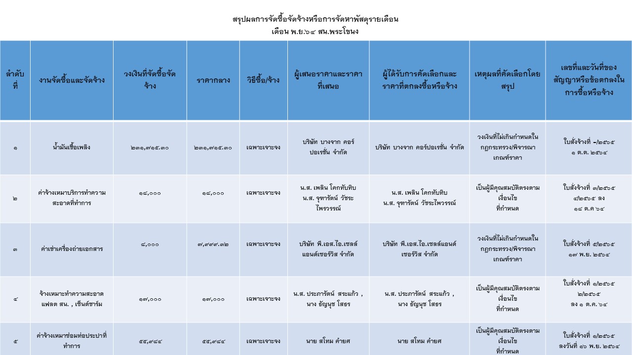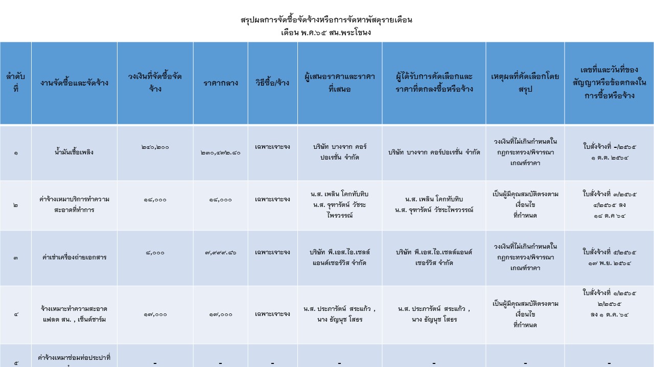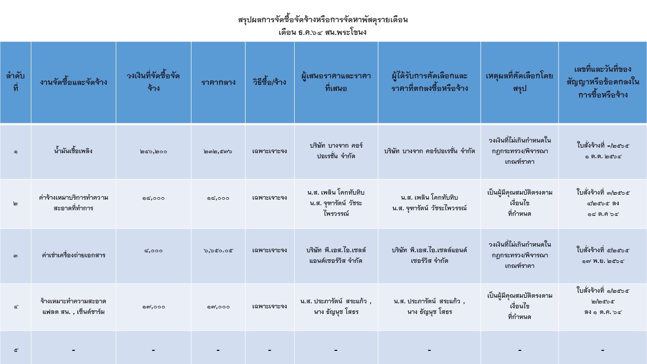 สรุปผลการจัดซื้อจัดจ้างหรือการจัดหาพัสดุรายเดือน